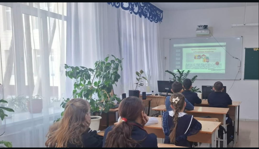 Сабақ барысында балалар Қазақстан Республикасындағы балалардың негізгі құқықтары мен міндеттерімен танысты, кәмелетке толмағандардың құқықтарын...