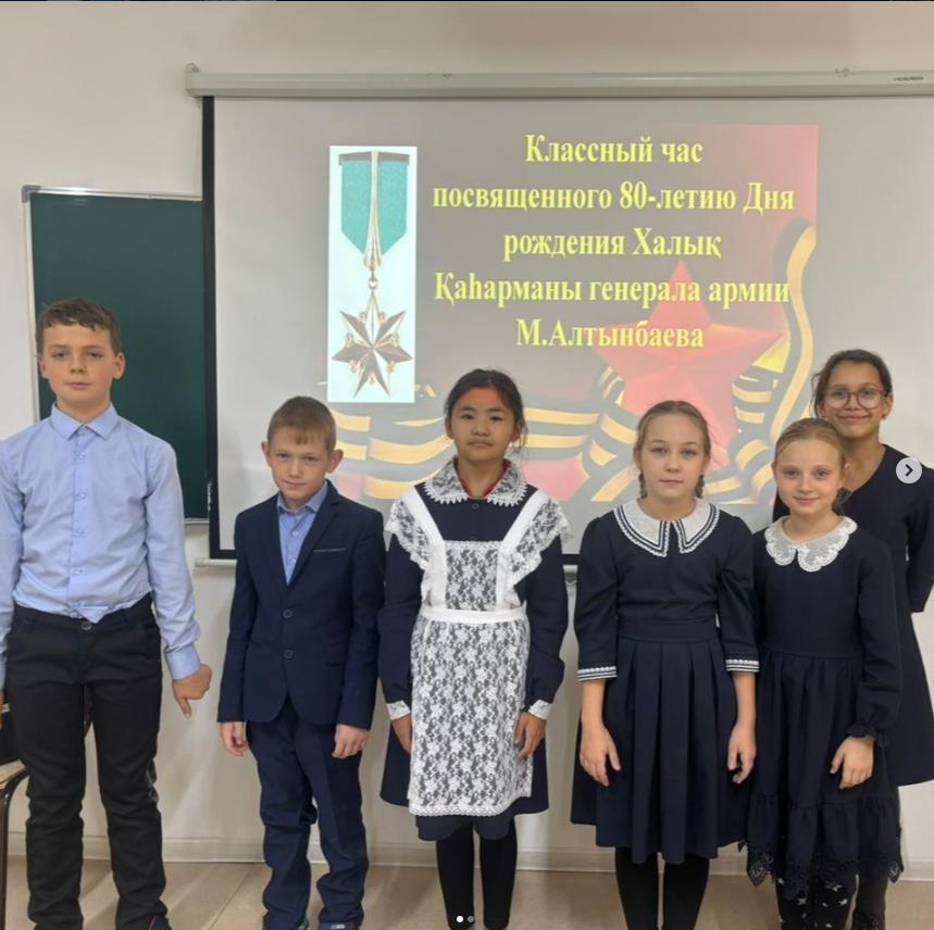 20 қарашада 5 "Б" сыныбында армия генералы М.Алтынбаевтың туғанына 80 жыл толуына арналған сынып сағаты өткізілді.