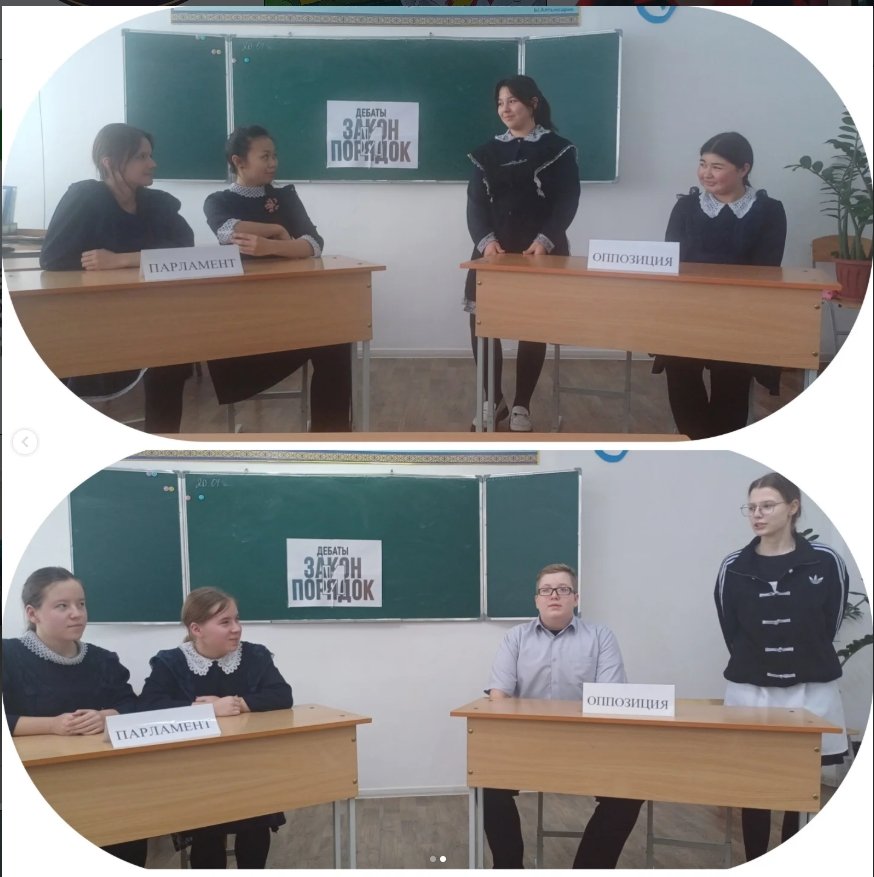 Біздің мектепте құқықтық мәдениетті қалыптастыруға, азаматтық жауапкершілікті дамытуға және өз көзқарасын қорғай білуге бағытталған 8-11 сыныптар арасында тақырыптық пікірталастар өткізілді.