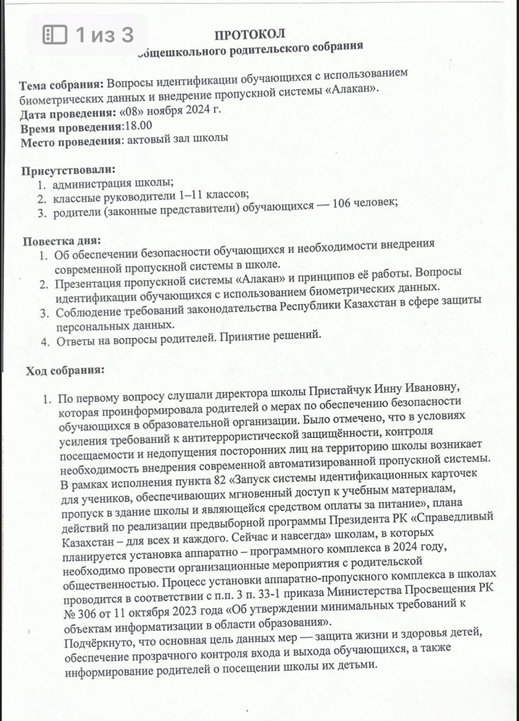 Білім беру процесін цифрландыруды іске асыру шеңберінде және ҚР Білім министрлігінің талаптарына сәйкес 2024 жылғы 6 қазанда мектепте "Алакан"жүйесінде оқушыларды тіркеу мәселесі бойынша ата-аналар жиналысы өткізілді.