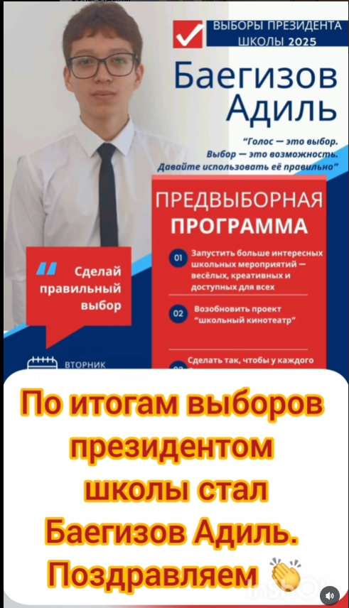 Дауыс беру қорытындысы бойынша 10 сынып оқушысы Баегизов әділ *президент болды.
