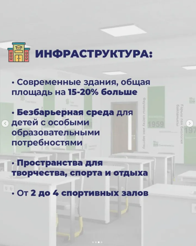Жаңа форматтағы мектептер-бұл жай ғана ғимараттар емес, сонымен қатар ыңғайлы және қауіпсіз оқу ортасы. "Келешек мектебі" ұлттық жобасы заманауи технологияларды, инновациялық инфрақұрылымды біріктіреді және әрбір баланың дамуына жағдай жасайды