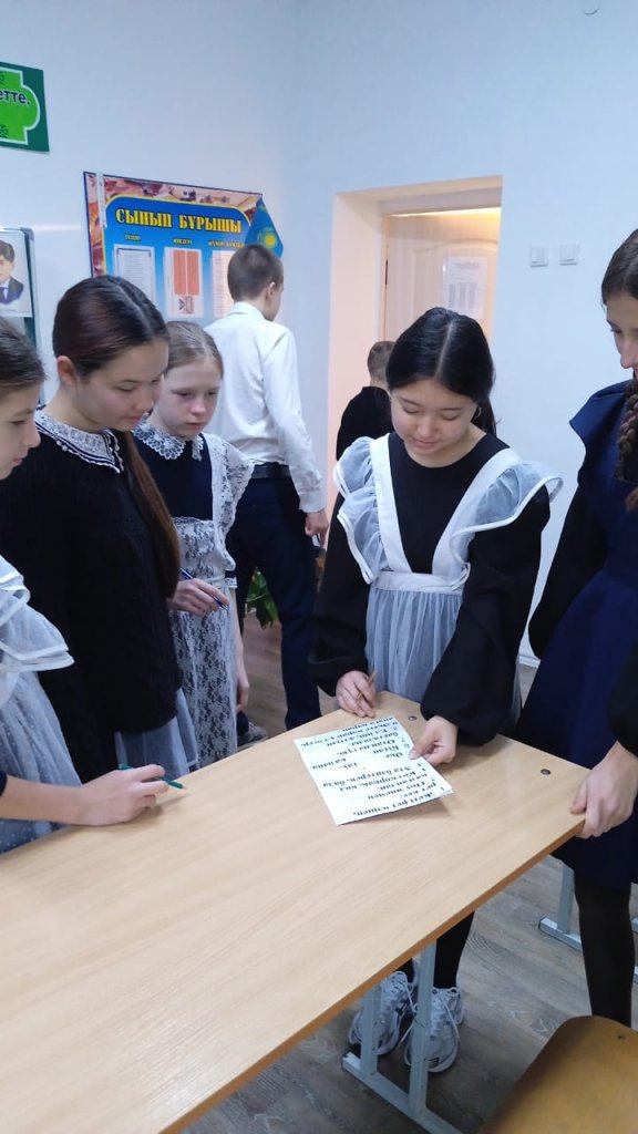 Бүгін 6–7 сыныптар арасында қызықты әрі танымдық квест ойыны өтті. Оқушылар белсенді қатысып, тапсырмаларды ұйымшылдықпен орындады.