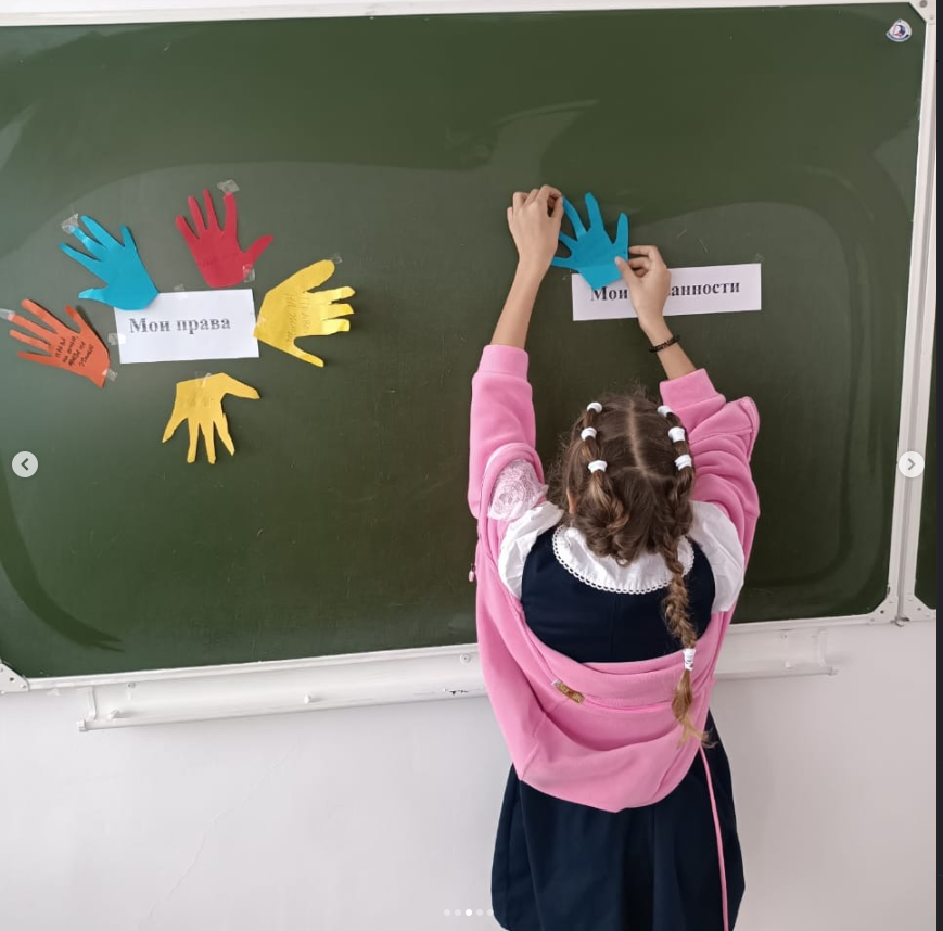 4-сыныпта "қауіпсіздік сабақтары" аясында "Заң және менің құқықтарым"сабағы өткізілді. Балалар өздерінің құқықтары мен міндеттерімен танысуды жалғастырды, кроссворд, жұмбақтар, жұмбақтар шешті, "менің құқықтарым мен міндеттерім"кластерін құрады.