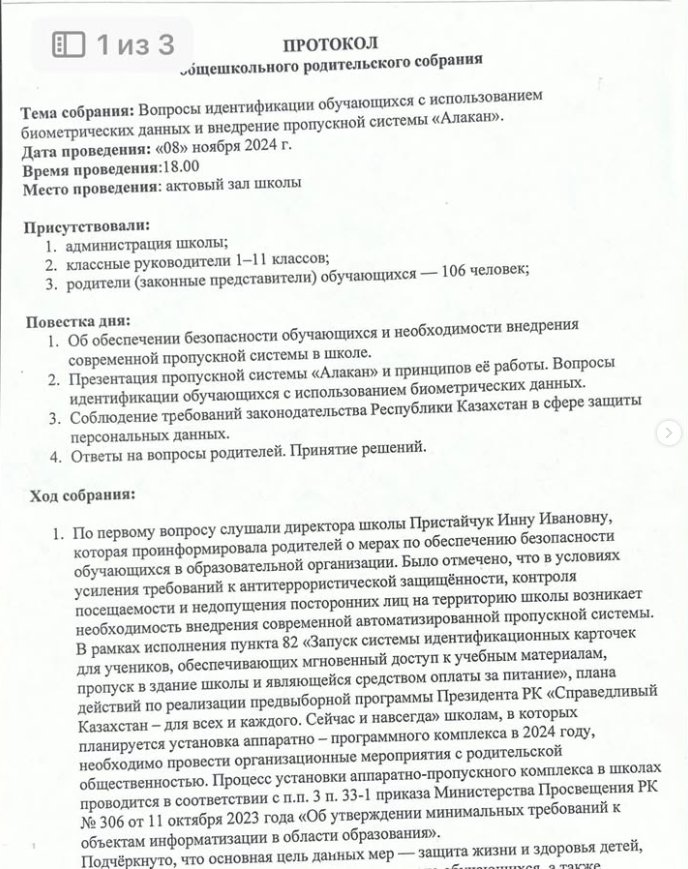 Білім беру процесін цифрландыруды іске асыру шеңберінде және ҚР Білім министрлігінің талаптарына сәйкес 2024 жылғы 6 қазанда мектепте "Алакан"жүйесінде оқушыларды тіркеу мәселесі бойынша ата-аналар жиналысы өткізілді.