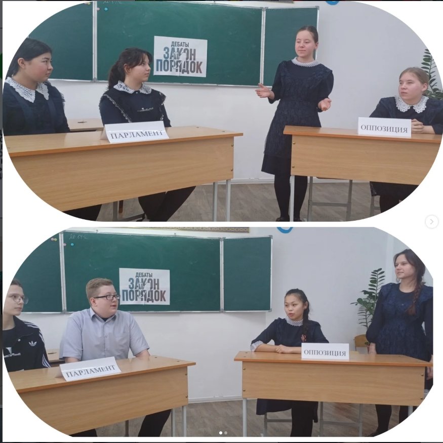Біздің мектепте құқықтық мәдениетті қалыптастыруға, азаматтық жауапкершілікті дамытуға және өз көзқарасын қорғай білуге бағытталған 8-11 сыныптар арасында тақырыптық пікірталастар өткізілді.