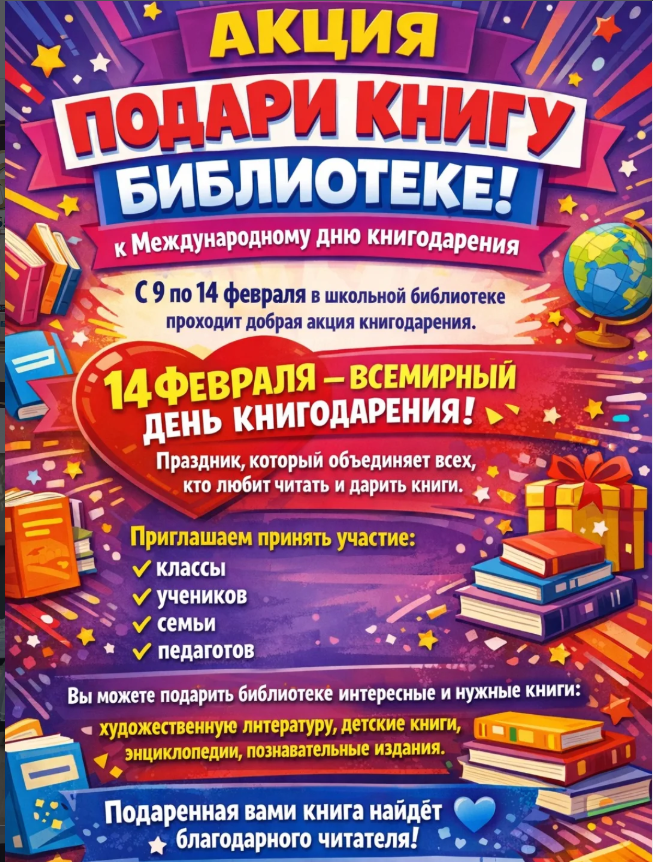 9-14 ақпан аралығында біздің мектеп кітапханасында Дүниежүзілік кітап беру күніне орайластырылған игі акция өтуде 💝